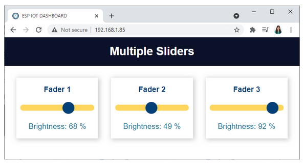 Tutorial ini menunjukkan cara membangun server web ESP32 yang menampilkan halaman web dengan beberapa bilah geser. Slider mengontrol siklus tugas saluran PWM yang berbeda untuk mengontrol kecerahan beberapa LED. Alih-alih LED, Anda dapat menggunakan proyek ini untuk mengontrol motor DC atau aktuator lain yang memerlukan sinyal PWM. Komunikasi antara klien dan ESP32 dilakukan menggunakan protokol WebSocket. Selain itu, setiap kali ada perubahan, semua klien memperbarui nilai slider mereka secara bersamaan.